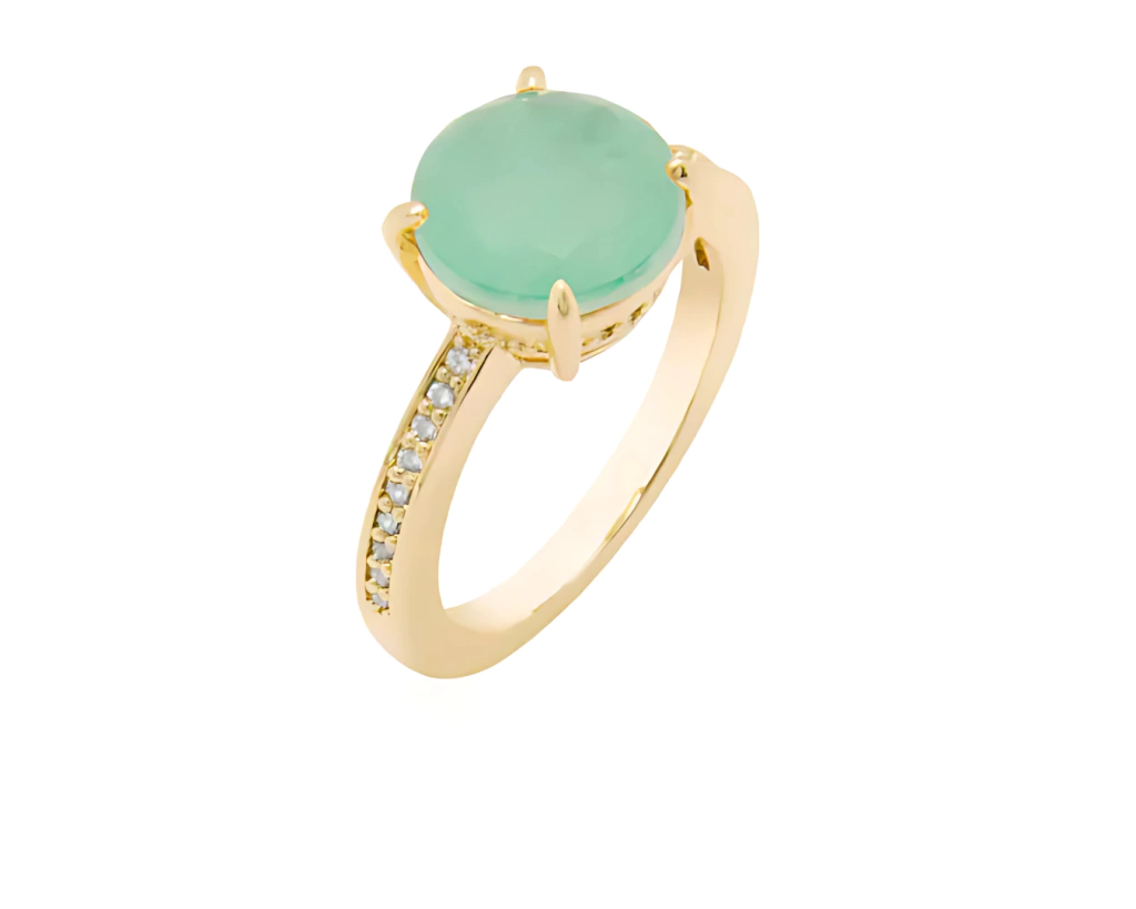 Encante-se com o Anel Fusion Verde Redondo, uma verdadeira obra-prima que combina a beleza da pedra fusion verde com o brilho das microzircônias.